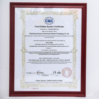 食品安全体系认证证书
