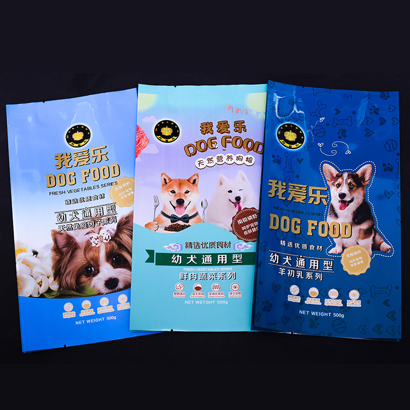 Features:Pet food packaging has a variety of forms, for different specifications of pet food packaging. The quality of pet food packaging directly affects the quality of pet food. Pet food packaging bags are based on the characteristics of the package of pet food to determine the bag type and packaging materials used! Pet fresh wet food packaging is generally used can be 121 degrees of high temperature sterilization packaging material! Pet puffed products snacks, generally used room temperature packaging! The color printing design of the packing bag and the bag type of the packing bag can be customized according to the customer requirement.
